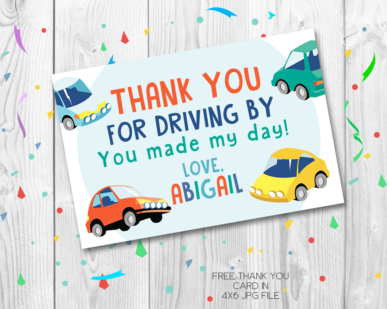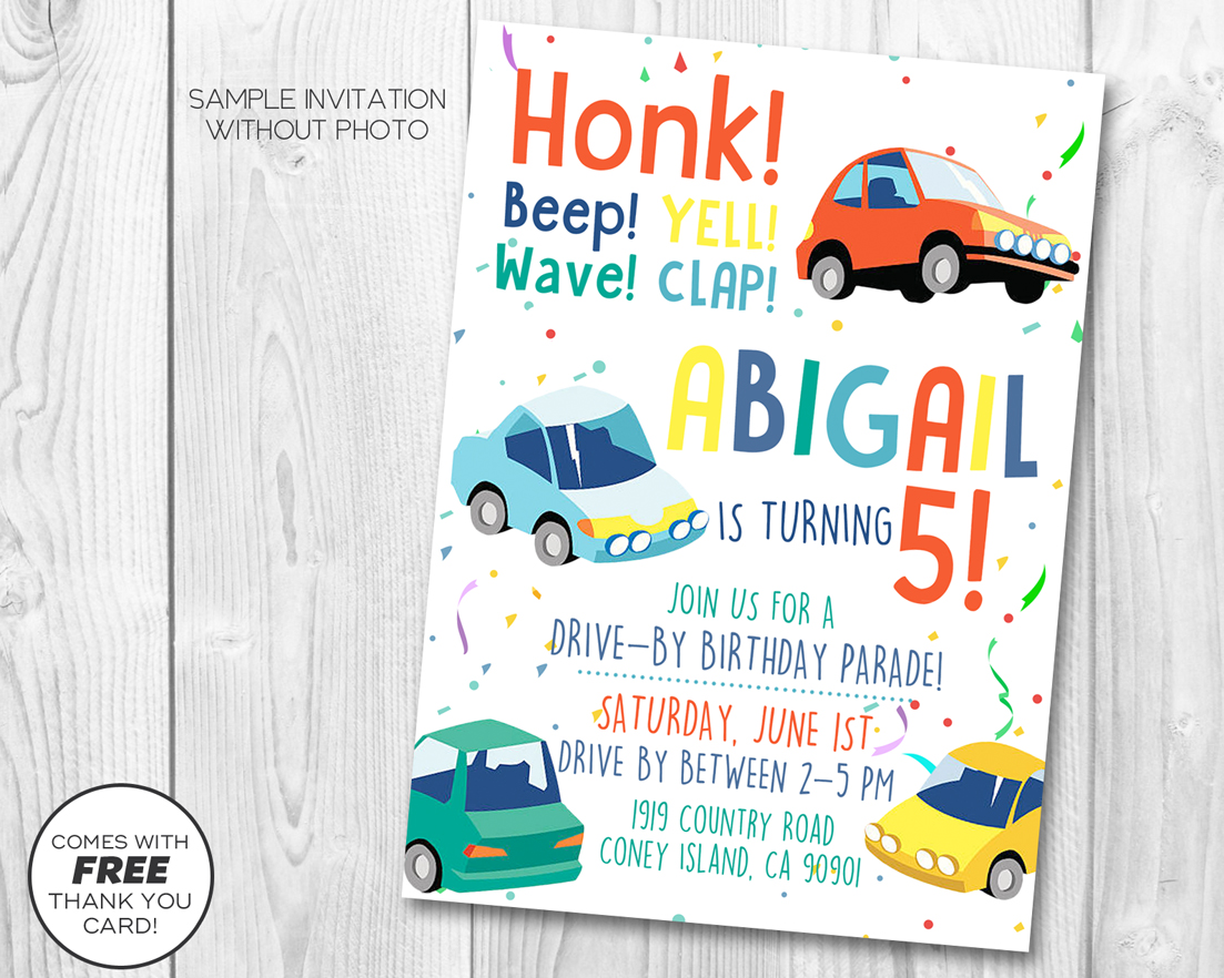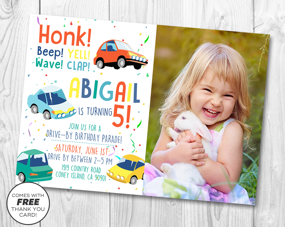 Drive By Invitation, Drive Through Birthday Party, Printable Drive By Invites, Digital or Prints with Envelopes, FREE Thank You Card