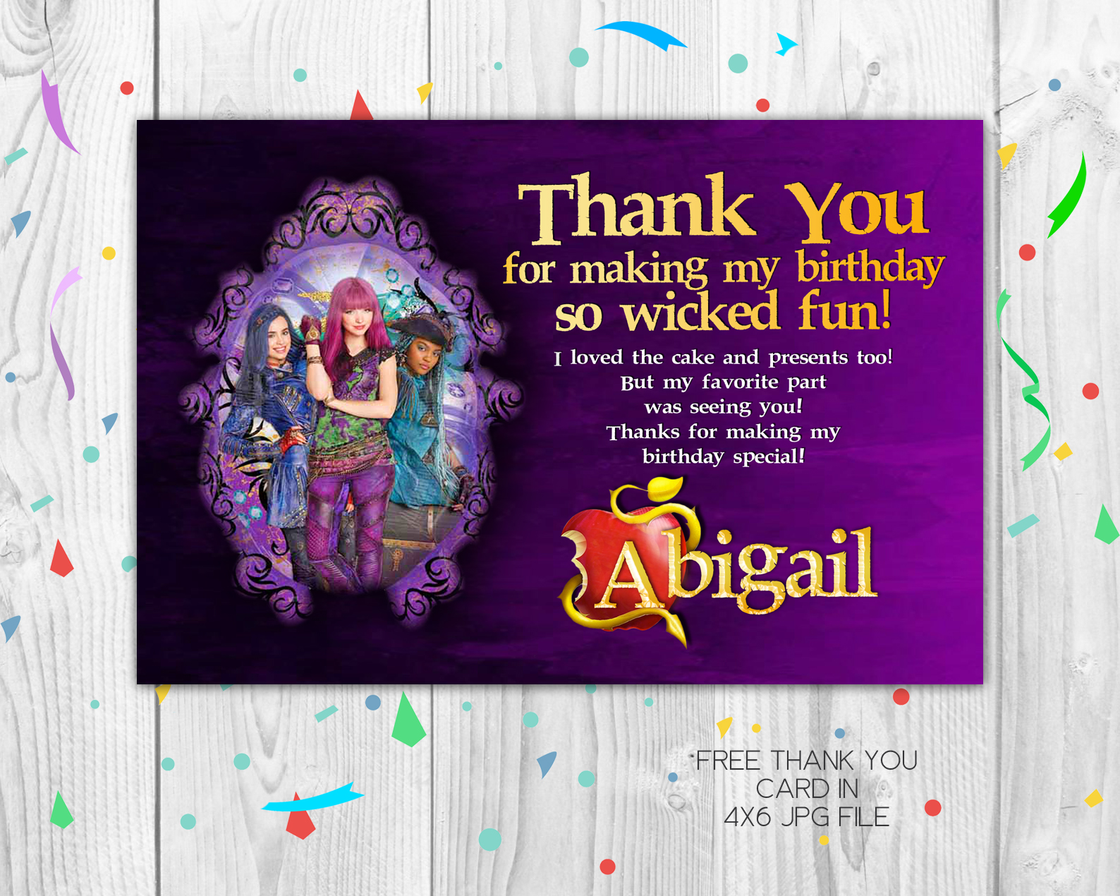 Descendants Invitation, Disney Descendants Birthday Party, Printable Descendants Invites, Digital or Prints with Envelopes, FREE Thank You Card