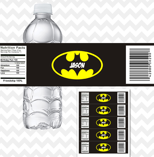 Batman Water Bottle Label Download, Printable Batman Birthday Labels